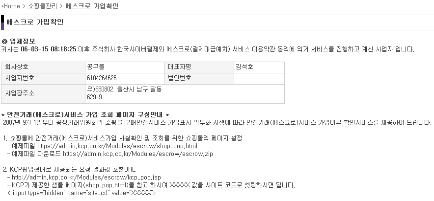 공구몰은 2006년 3월 15일 08:18:25 이후부터 현제까지 (주)한국사이버결제 와 에스크로(결제대금예치) 서비스를 제휴하고 있습니다