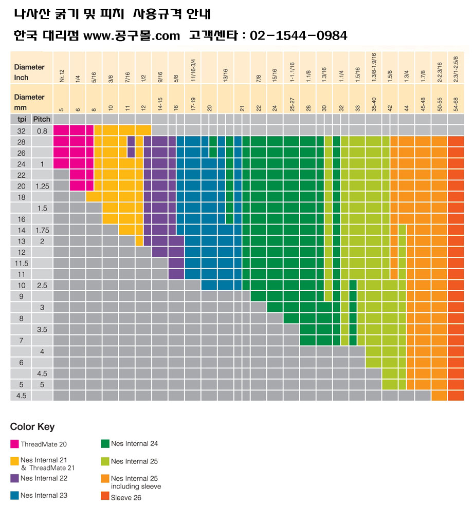 이스라엘  NES-내부-나사산 사용규격 조견표 파일첨부 클릭하여  참고하세요