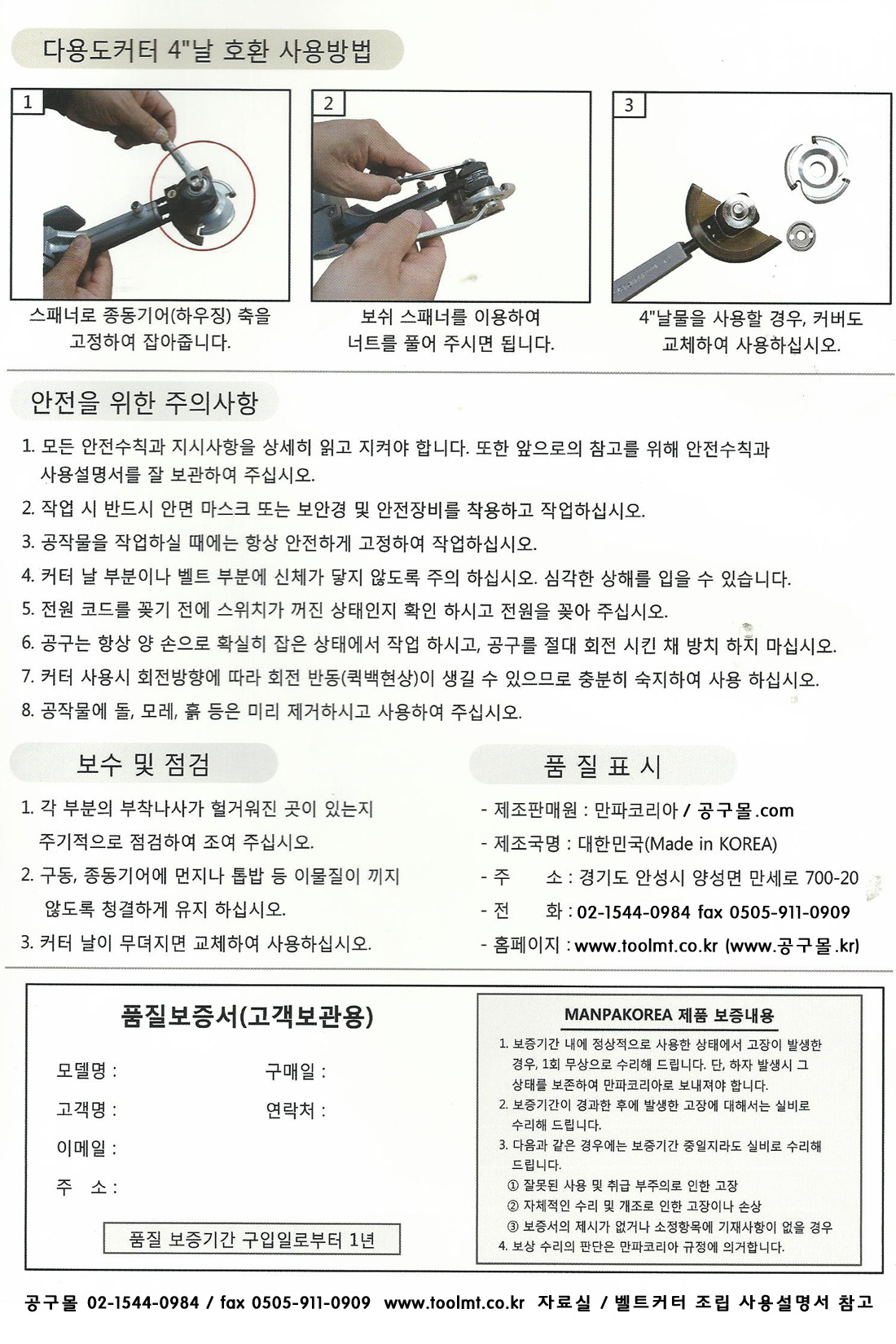 벨트커터 및 다용도커터 조립 사용설명서 입니다