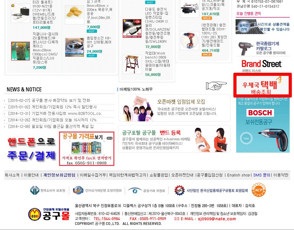 www.공구몰.com 메인화면 오른쪽 하단부분 위치 합니다