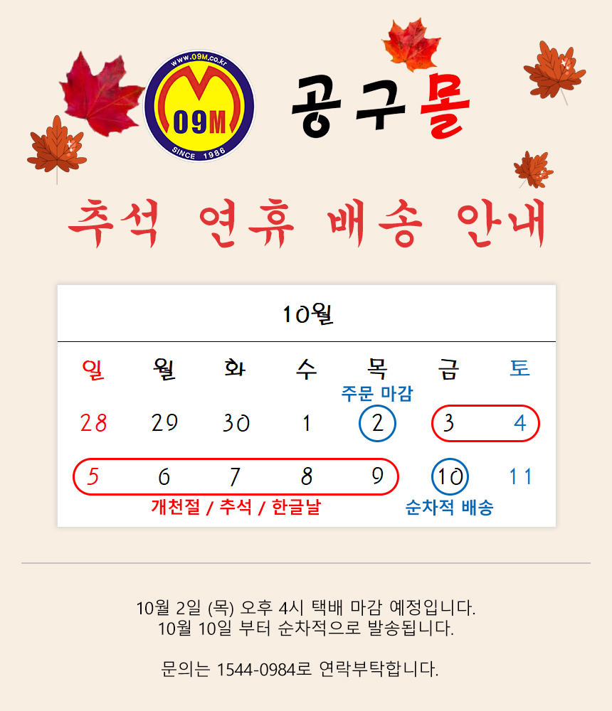 고객님 안녕하세요 공구몰 / 주식회사 공구몰 이용에 깊이 감사말씀 드립니다 추석 연휴 주문제품 일정안내 드립니다 이점 참고하여 업무에 도움이 되었으면 합니다 배송 문의 1544-0984 전화주세요