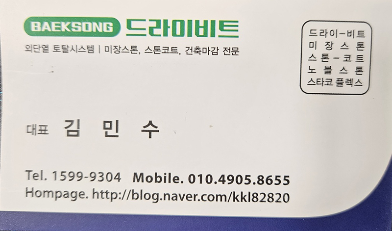 백송 드라이비트 외단열, 미장스톤, 스톤코트, 건축마감. 대표 김민수 010-4905-8655