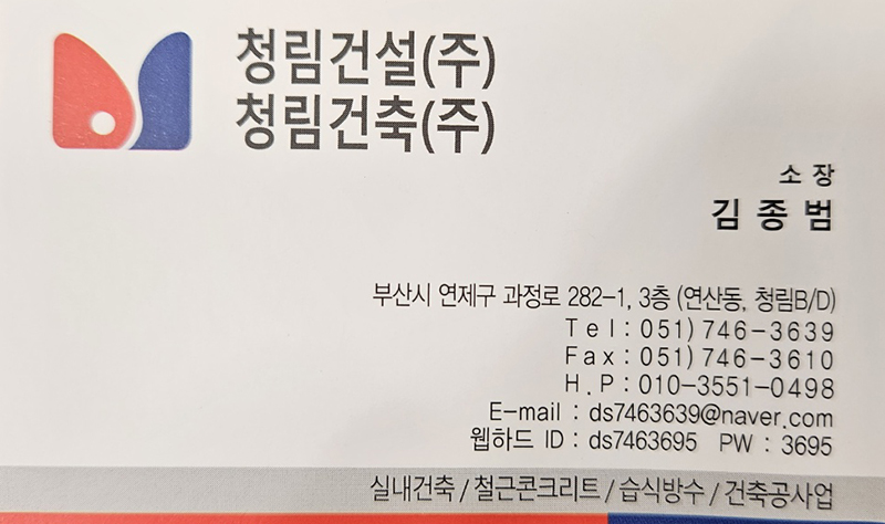| 부산시 연제구 청림건설(주) 청림건축(주) |