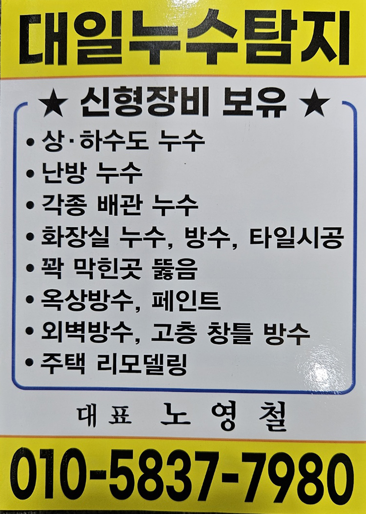 대일누수탐지 상,하수도누수,난방누수,화장실누수, 타일시공, 옥상방수,페인트