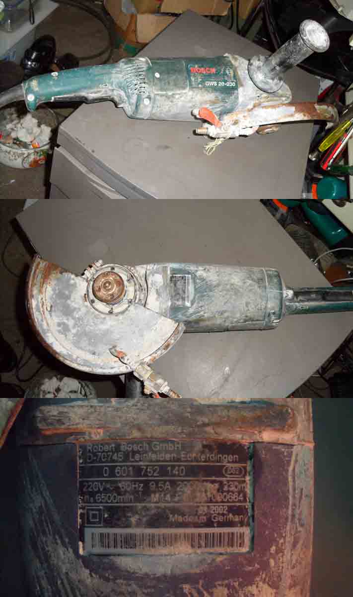독일 보쉬(BOSCH) 앵글그라인더(9인치) (GWS 20-230) 입니다. 중국 오엠이아님니다. 오리지날 독일제 입니다. 현장에서 사용하던 것이라 세멘트 가루가 묻어 있읍니다. 파손되곳이 없읍니다. 동작매우 양호 합니다. 220볼트 입니다.