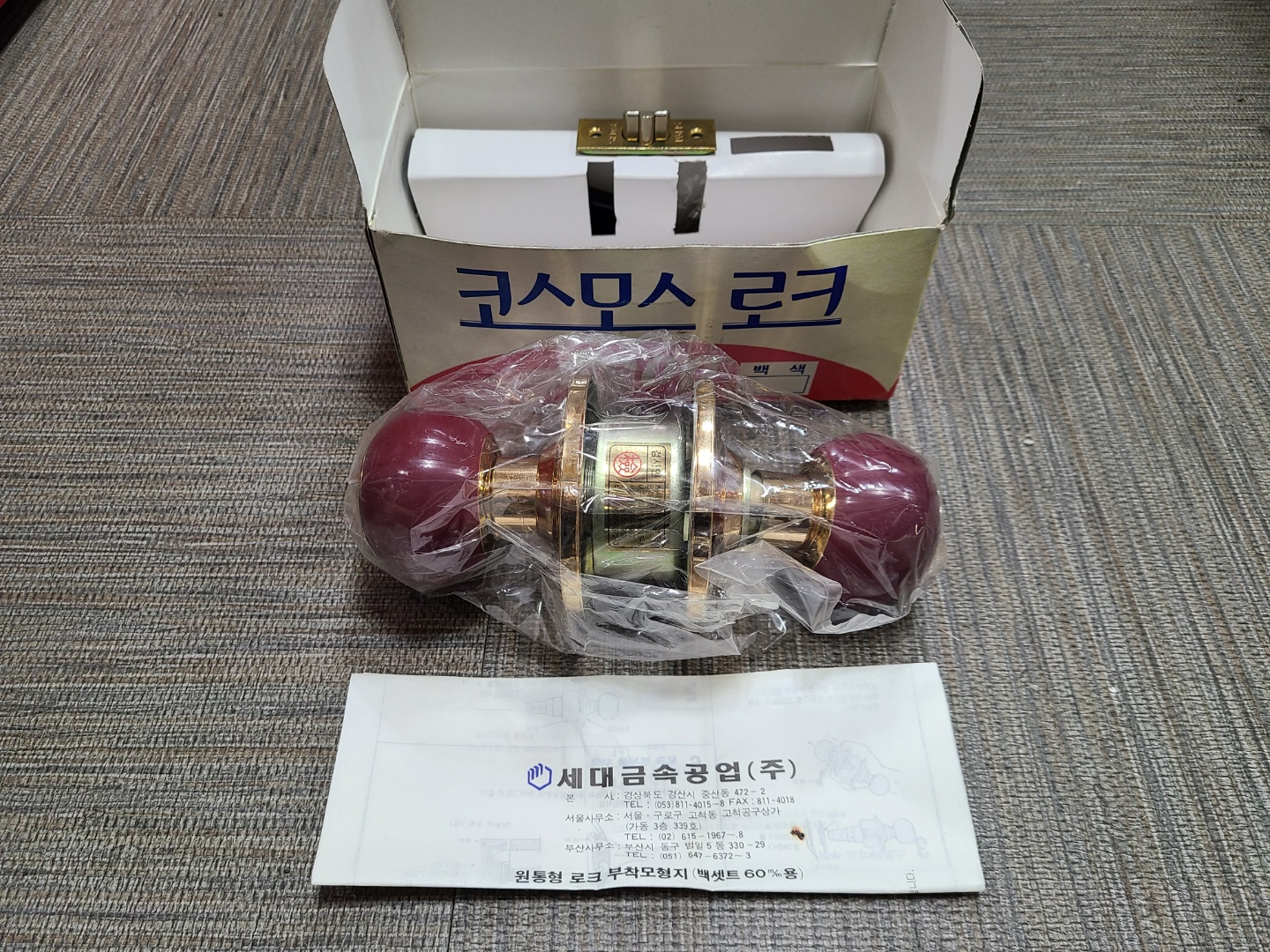 안녕하세요새제품 (미개봉) 자주색 침실도어록 (잠금장치/키있음) 세대금속/ 한국생산 본제품 2020년12월2일 현제 보유수량 26개한하여 개당 10,000원 부가세별도 (배송료별도)