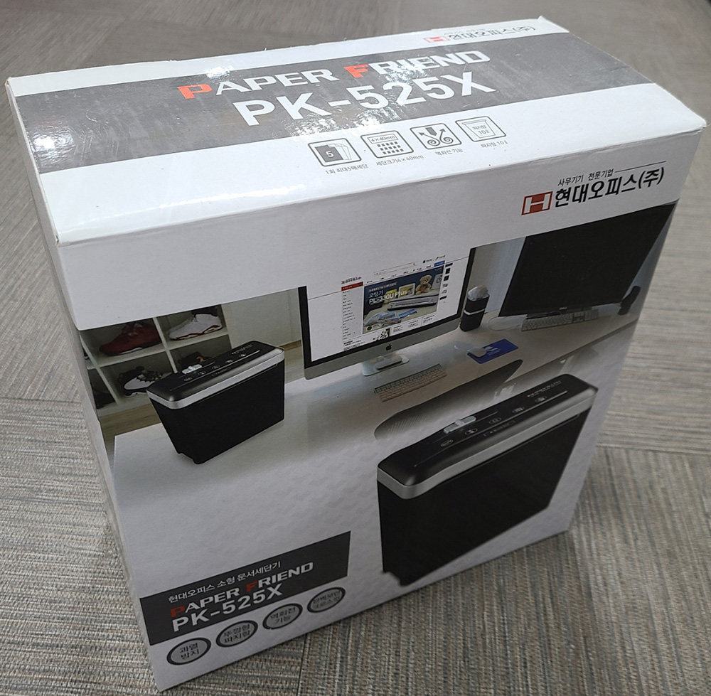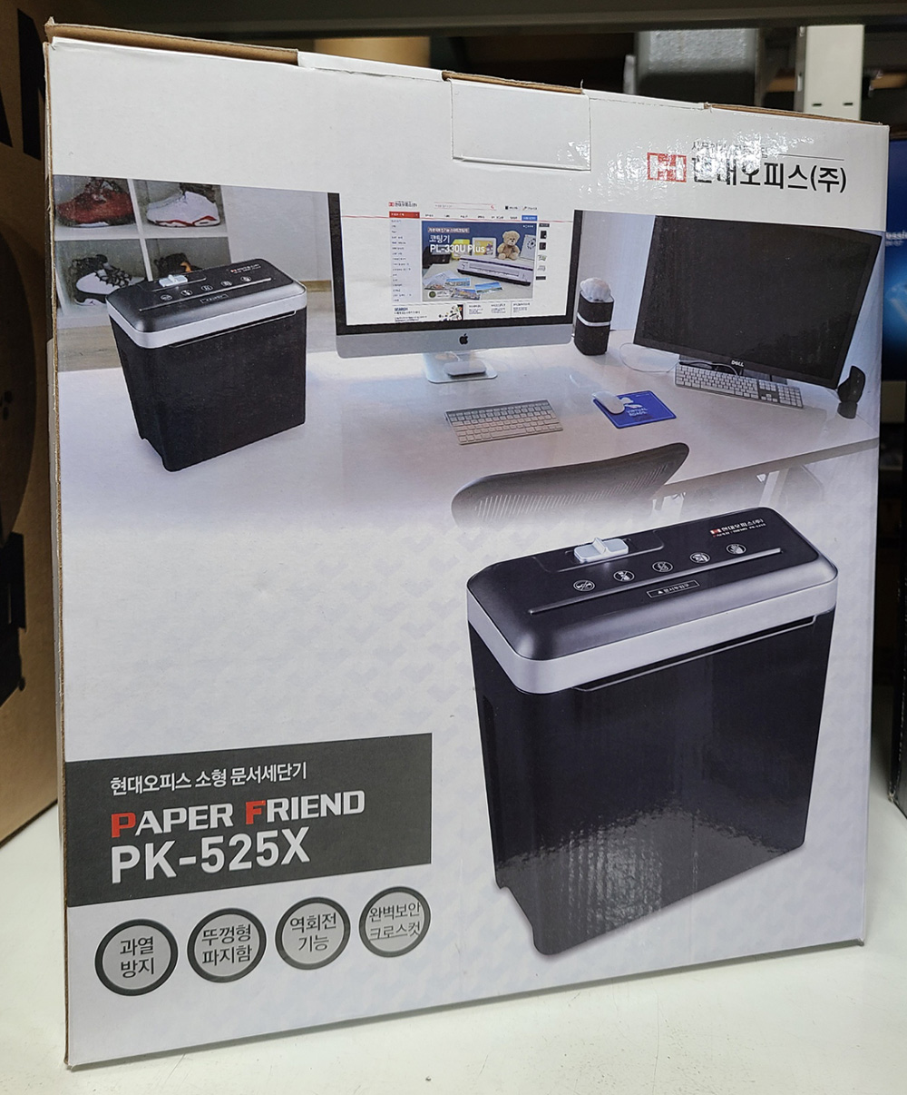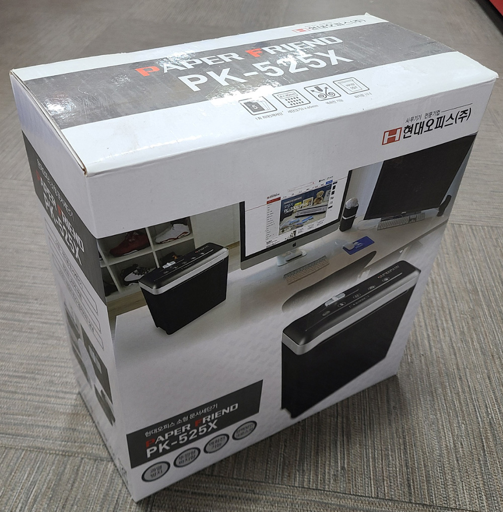 안녕하세요 문서세단기(현대오피스) PK-525X(1회5매) /183-1382/전압220V 개봉하지 않는 새제품입니다
