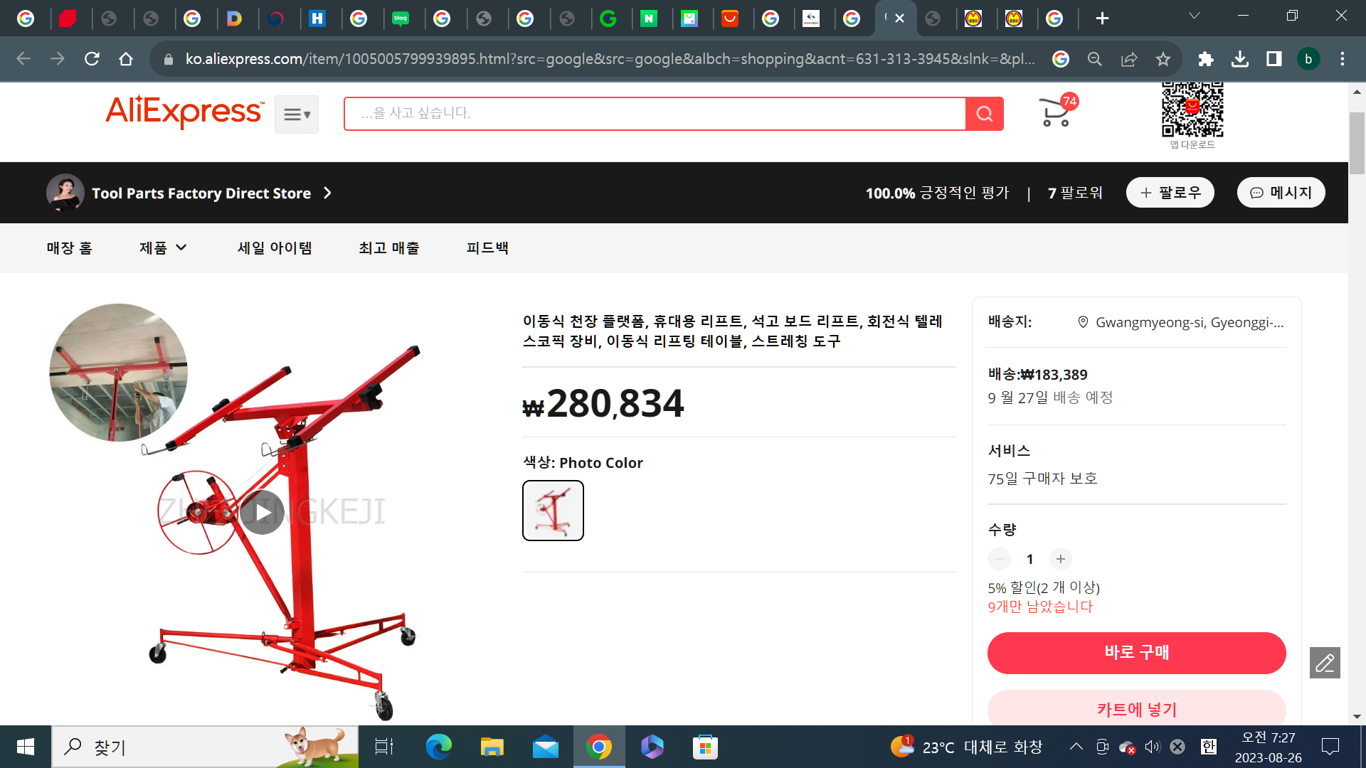 알리에서 28만 배송비18 만 입니다010-삼칠13-42칠칠
