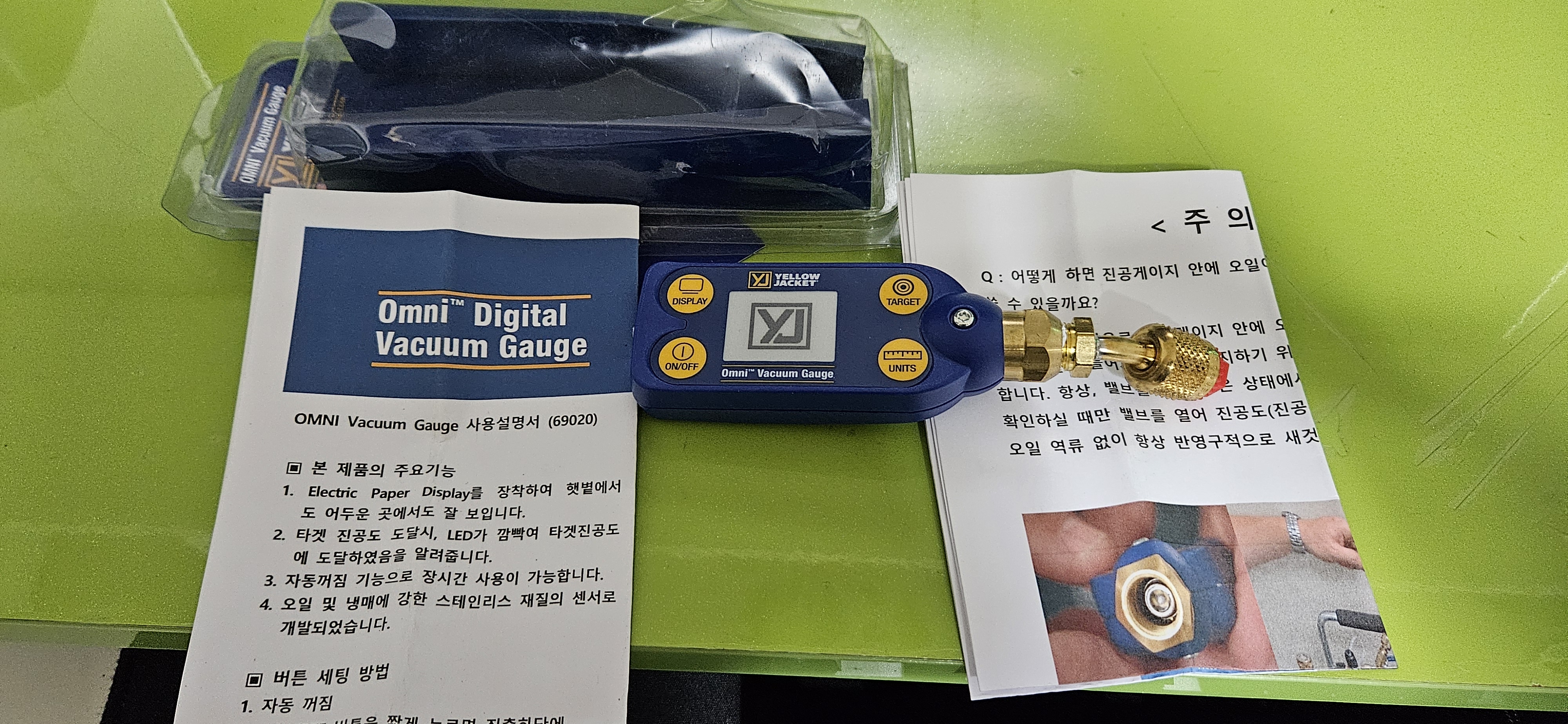 옐로우 자켓 디지털 진공계가 너무 욕심이나서 작년 2월즘 개인 카드로 냉동 공구상에서 부가세 포함 37~8정도에 구매 햇고 이직으로 싸게 내놓습니다.