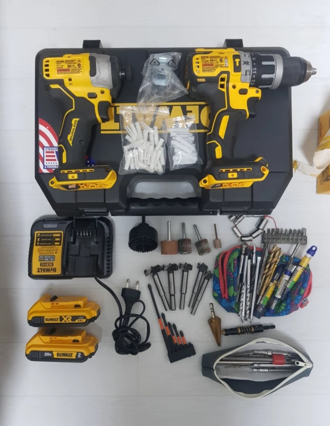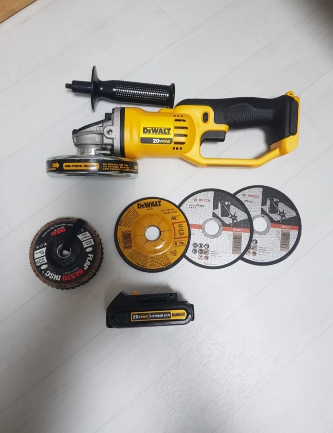 사진에 나온것 모두 일괄판매합니다 1.트리머 DCW600 새상품 2.임팩드릴DCS809 3.해머드릴DCD796 4.원형톱DCS571 5.멀티컷터DCS354 6.그라인더DCG312 국내날 쓰시려면 만조 바꾸셔야합니다. 7.배터리 3A 1개 2A 4개 8.그밖에 사진에있는것들 가방까지 다 가져가시면됩니다 전북전주 판매가 50 만원 0104274O134 문자주세요