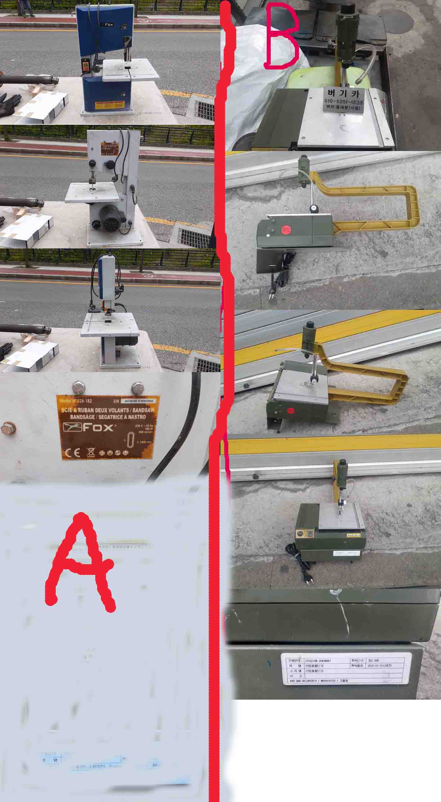 밴드톱 FOX F28-182/PROXXON 스크롤쏘 A:밴드톱 FOX F28-182 입니다 동작외관 양호 합니다 톱날없읍니다 사진은 실사 입니다