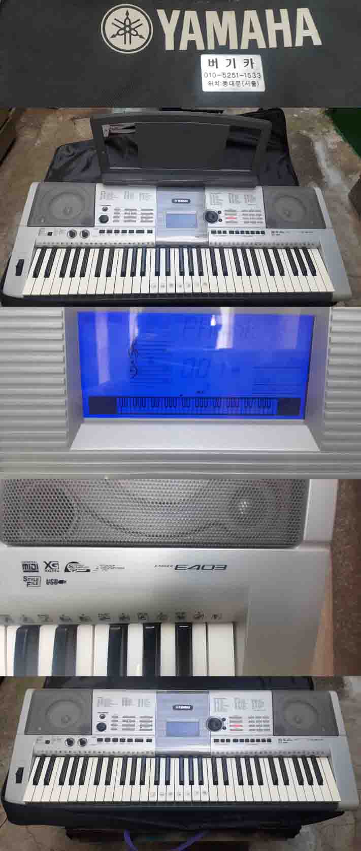 YAMAHABPSR E403 키보오드 전자올갠 입니다 동작외관 상태 양호 합니다 소리가 좋읍니다 가방그대로 있읍니다 사진은 실사 입니다 가격:25====20만원 화물착불 연락처:010-5251-1533 이기수 기업은행:260-000893-03-012