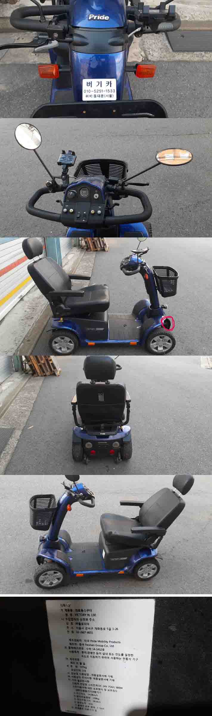 pride VICTORY XL130의료용 전동스쿠터 입니다 미국 PRIDE 의료용 전동스쿠터 회사 입니다 중국에서 오엠으로 생산한 제품 입니다 적색표시외에 동작상태 양호 합니다 밧데리는 새것으로 교체해드림니다 사진은 실사 입니다