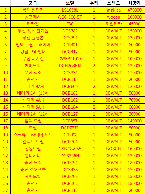 회사에서 몇 번 안 쓴 전동 공구 판매합니다.
