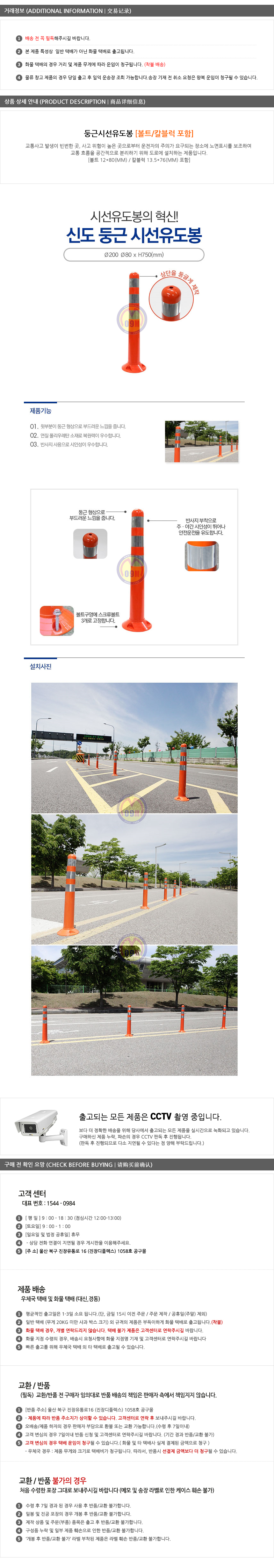 착불배송.둥근시선유도봉[볼트,칼블럭포함] 규제봉 차선규제봉 탄력봉