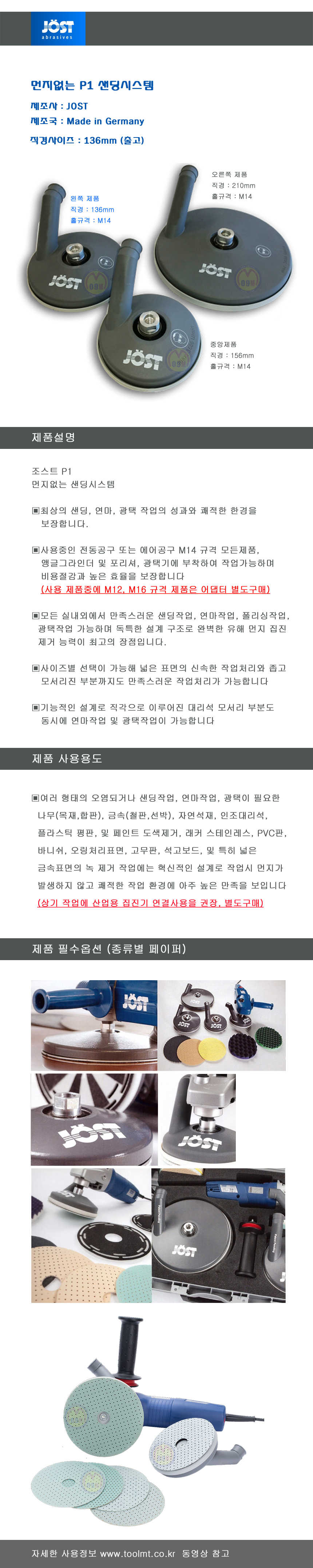 먼지없는 샌딩시스템 P1-136mm JOST,조스트,샌딩페드,샌딩패드,샌딩,연마,폴리셔,공구몰,JOSTP1136,사포,tkvh,  |