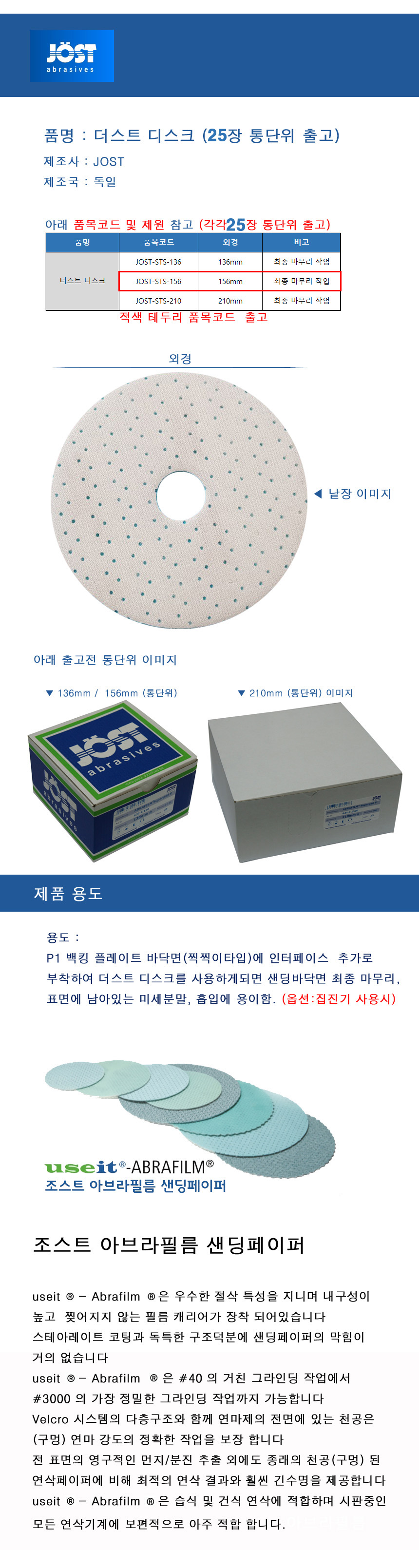 더스트 디스크 JOST-STS-156 (25장) JOST,조스트,백킹플레이트, 샌딩페드,샌딩패드,공구몰;JOSTSTS156,사포,tkvh,