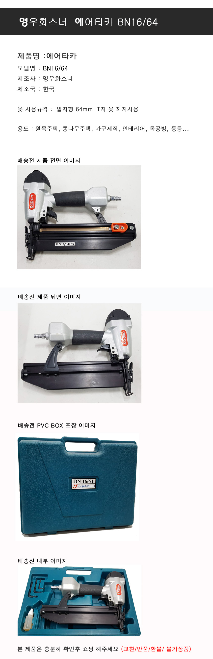 [전시세일가] 에어타카 BN16/64LW 영우화스너,에어공구,인테리어공구