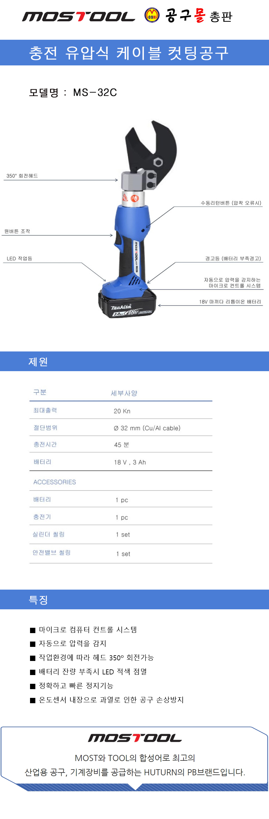 충전 유압식 케이블 컷팅공구 MS-32C MOSTOOL,MS32C,케이블커터,케이블컷팅,유압컷팅기