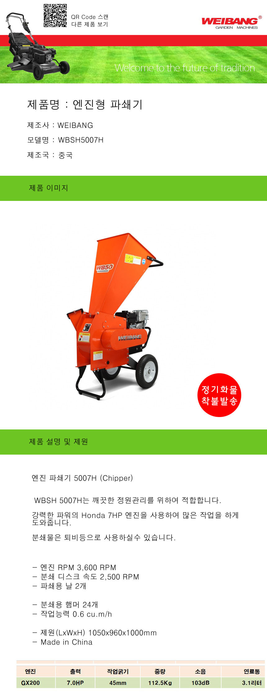 엔진파쇄기 WBSH5007H(7.0HP) WEIBANG.가지파쇄기,공구몰,