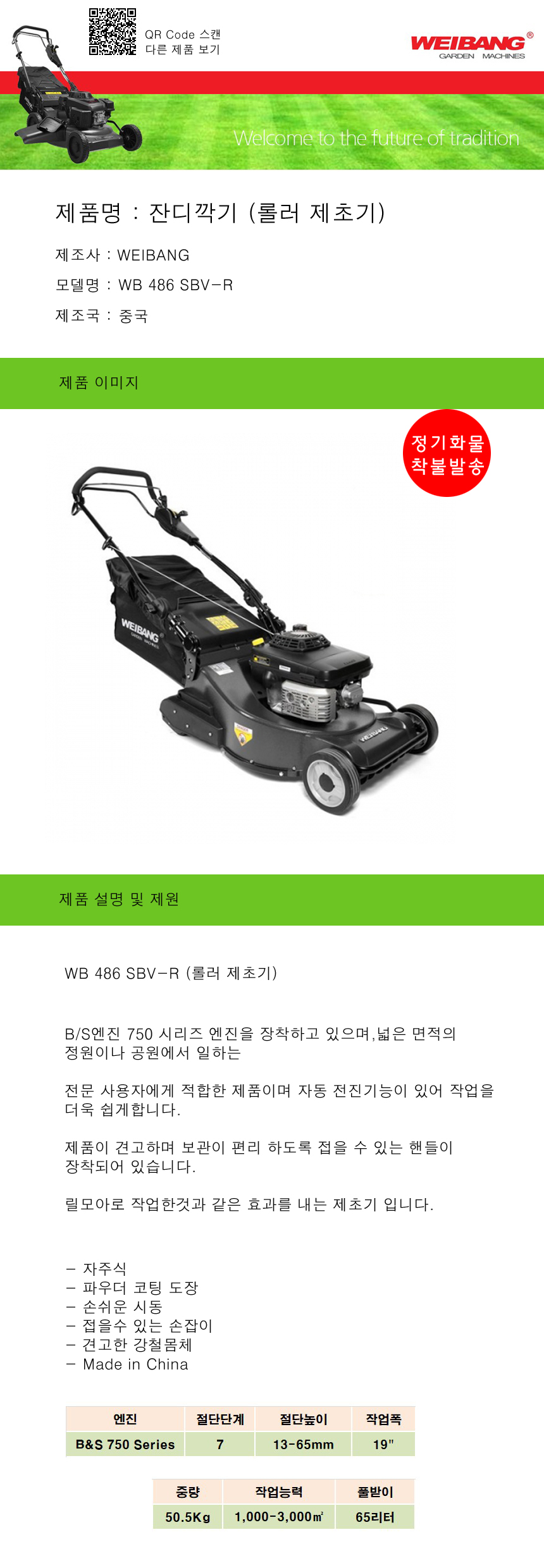 자주식 롤러제초기 WB 486 SBV-R WEIBANG. 엔진잔디깍기, 엔진제초기, 공구몰