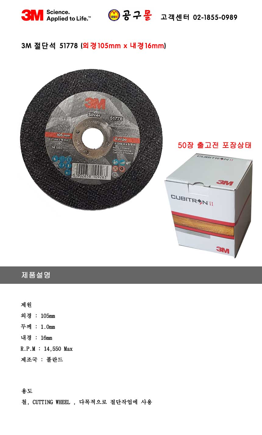 브랜드 : 3M(쓰리엠)-공구몰 / *절단석1909