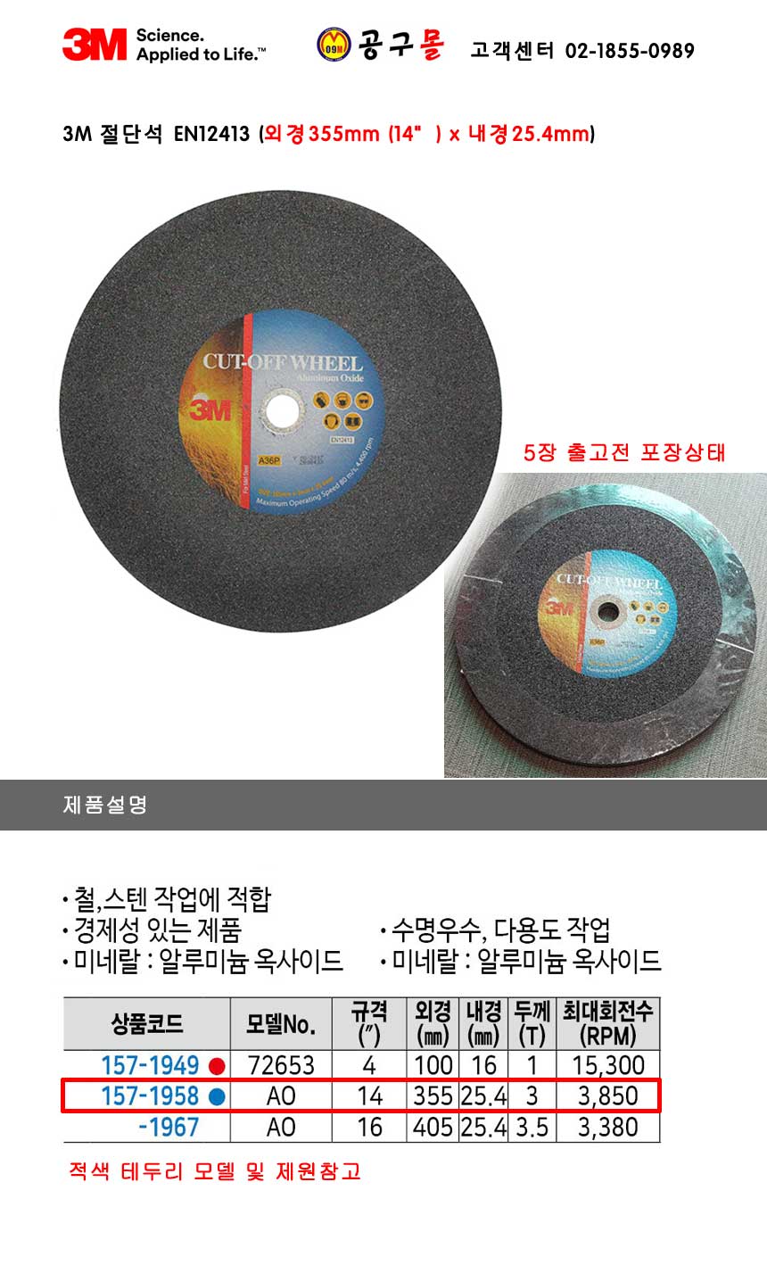 절단석(14) NE12413 (5장출고) 3m 쓰리엠절단석