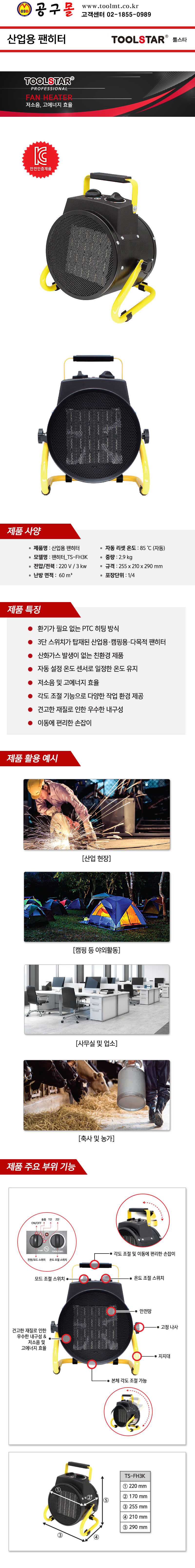 팬히터 TS-FH3K, 3KW (TSFH3K) 툴스타,TOOLSTAR,전기히터, 전기팬히터