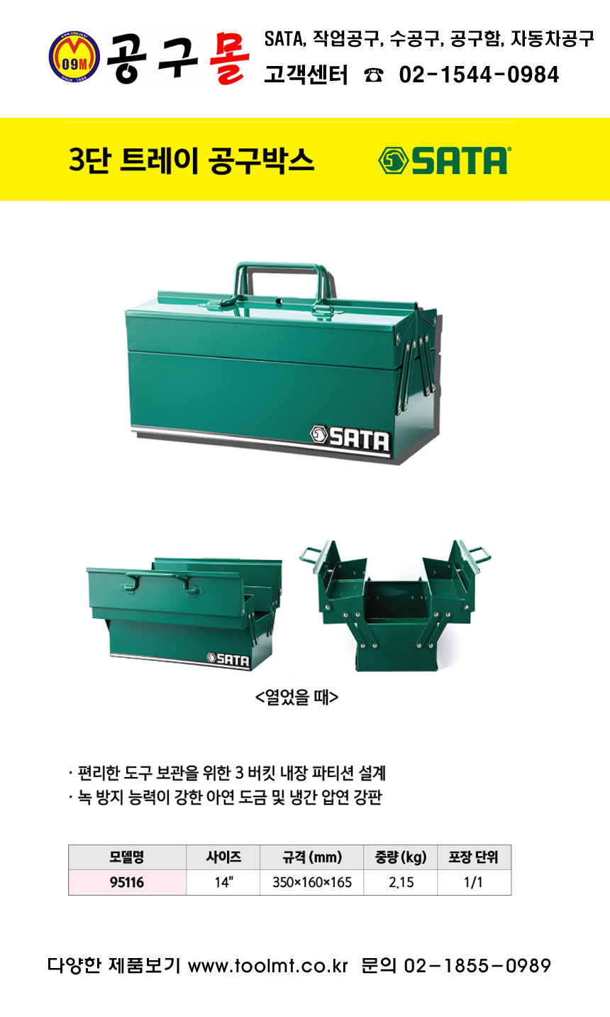 3단 트레이 공구박스 95116 (350mm) SATA, 사타, 철공구함, 철공구박스, 3단철공구함, 울산공구몰