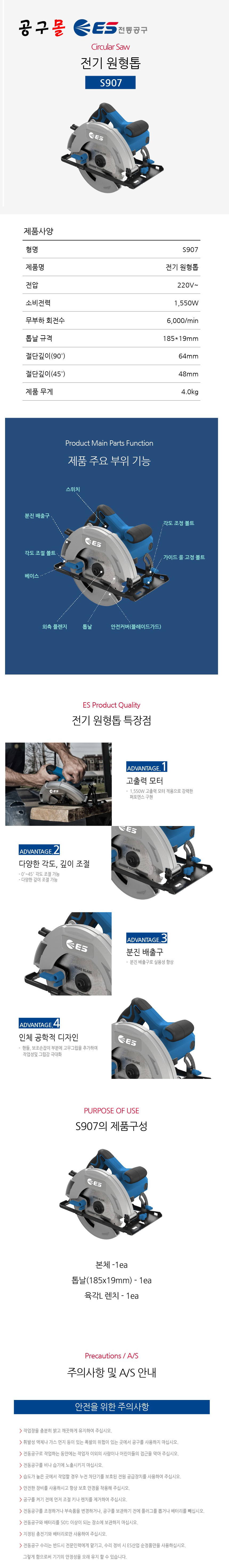 ES산업 원형톱 S907(7) 1550W,220V (4Kg) ES산업,전기톱,합판재단톱