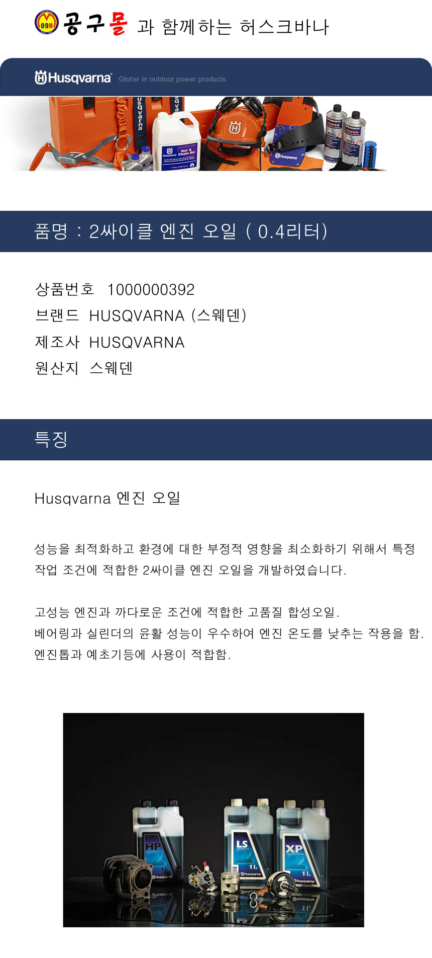 허스크바나 2싸이클 엔진오일 0.4L HUSQVARNA, 공구몰