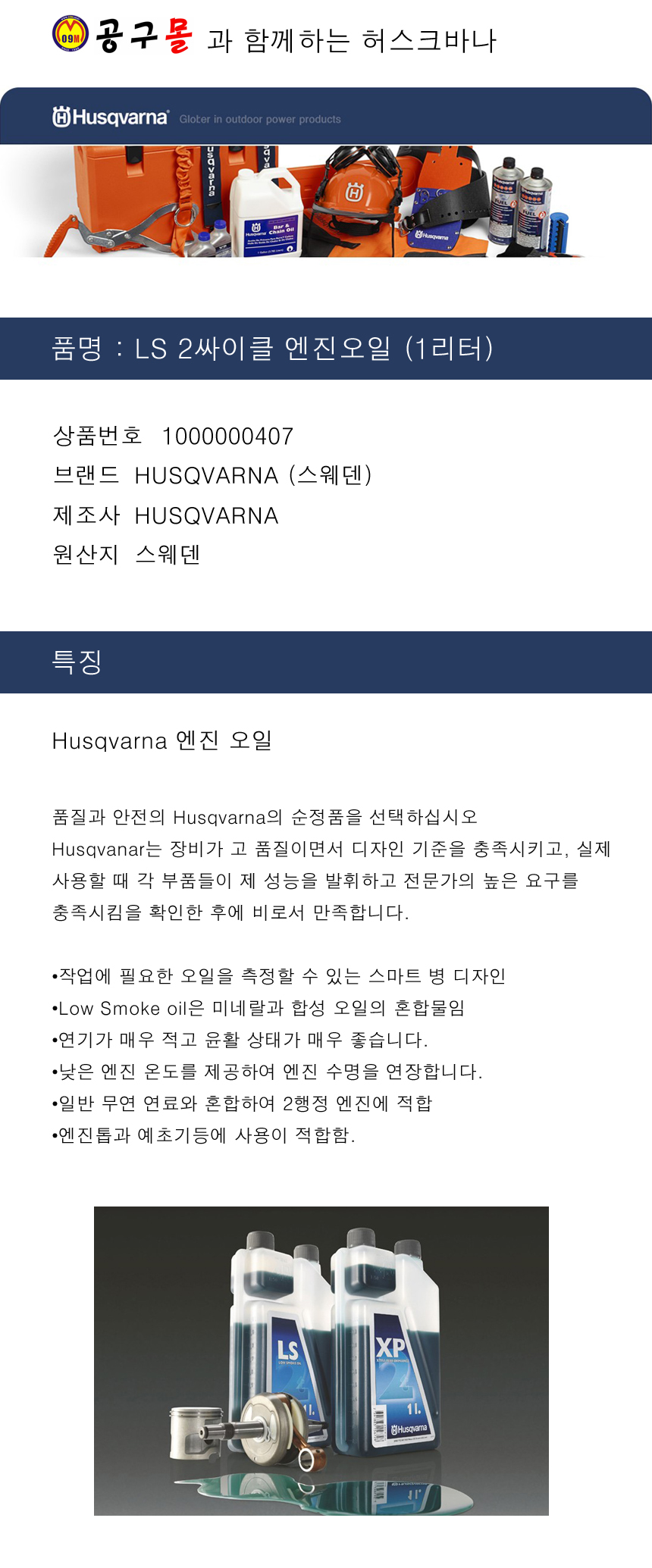 허스크바나 LS 2싸이클 엔진오일 1L HUSQVARNA, 공구몰