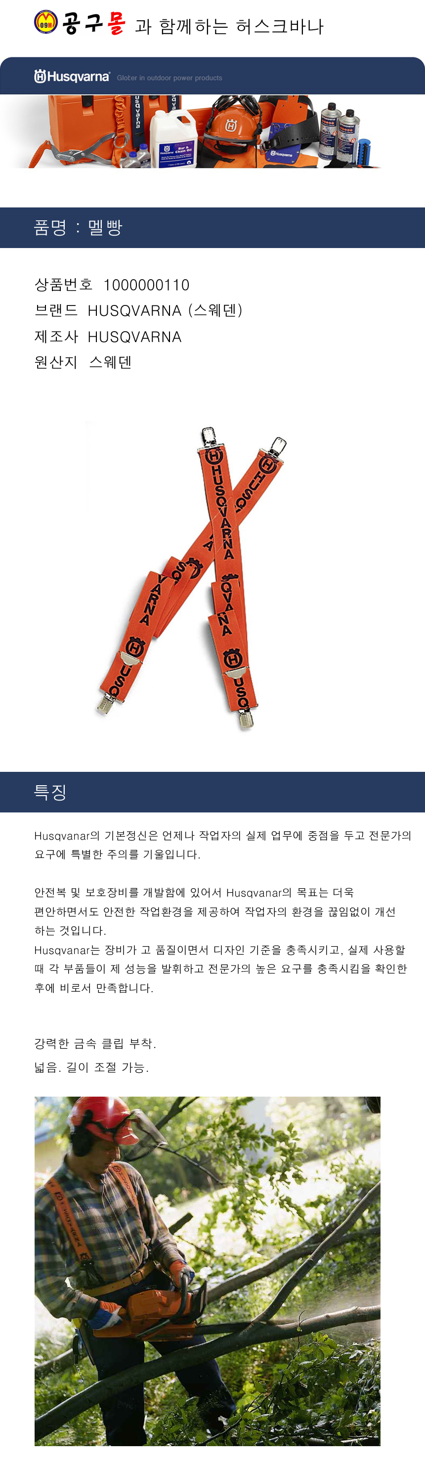 허스크바나 멜빵 HUSQVARNA, 공구몰, 안전용품