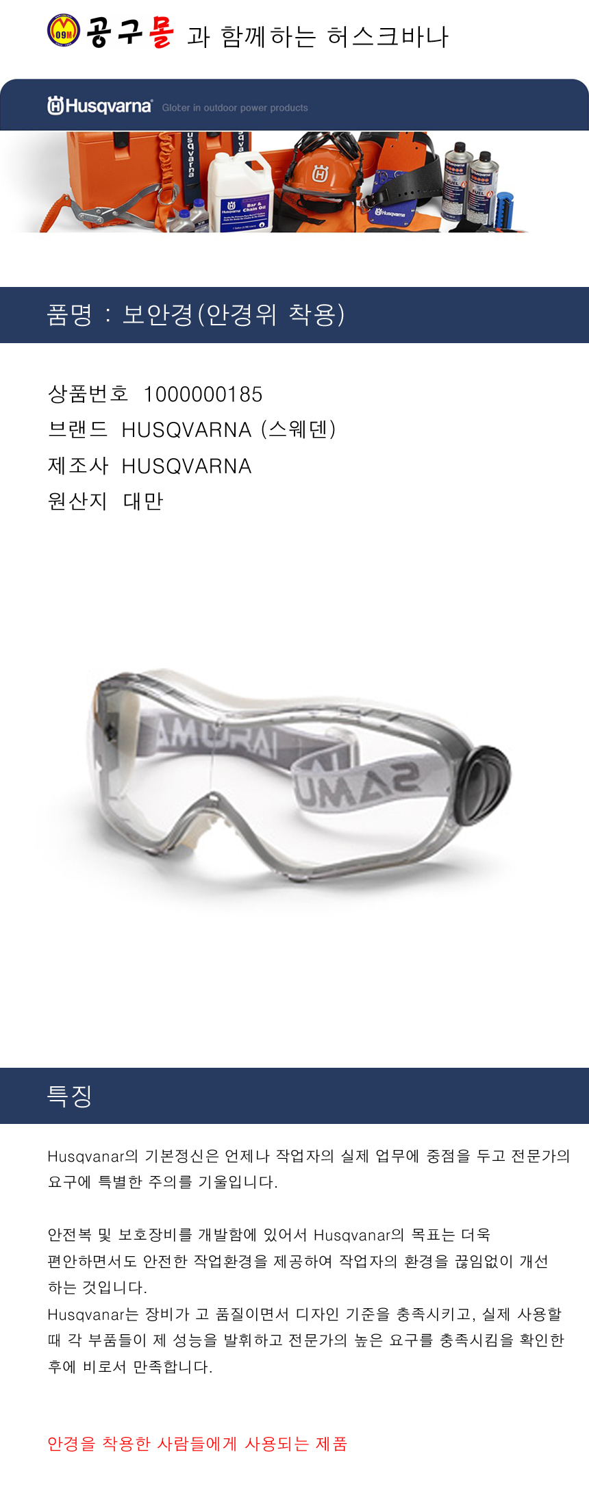 허스크바나 보안경(안경위 착용) HUSQVARNA, 공구몰, 안전용품