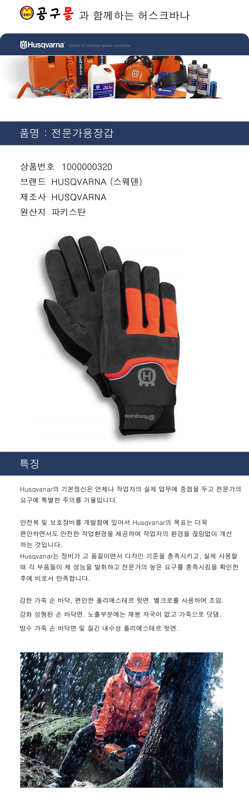 허스크바나 전문가용 장갑 HUSQVARNA, 공구몰, 안전용품