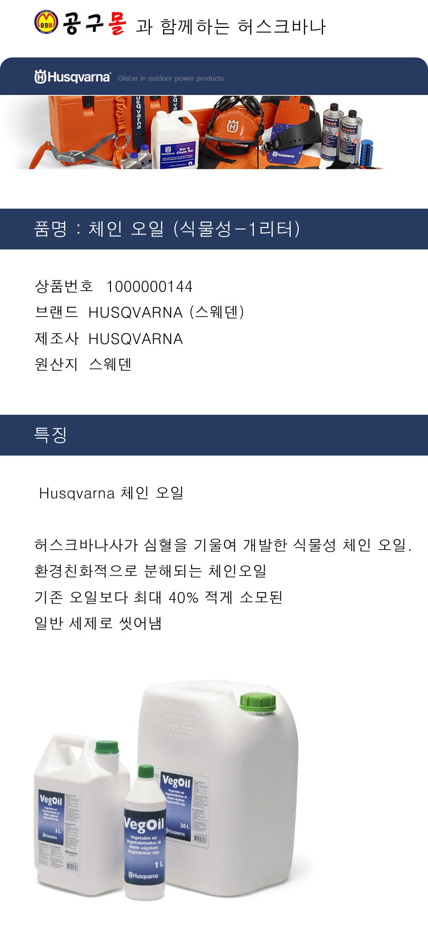 허스크바나 체인오일 (식물성-1리터) HUSQVARNA, 공구몰,체인전용오일