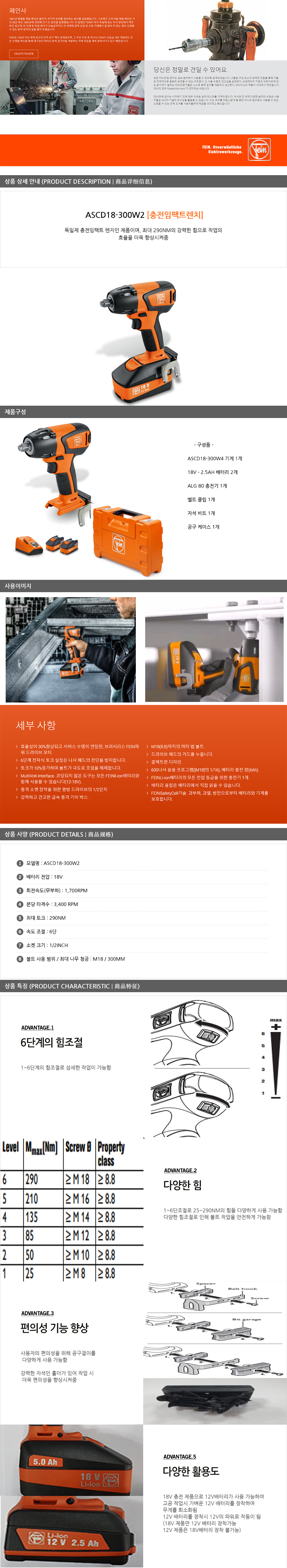 파인 임팩트렌치 ASCD18-300-W2(18v-6.0ah) , fein, 충전공구, 공구몰