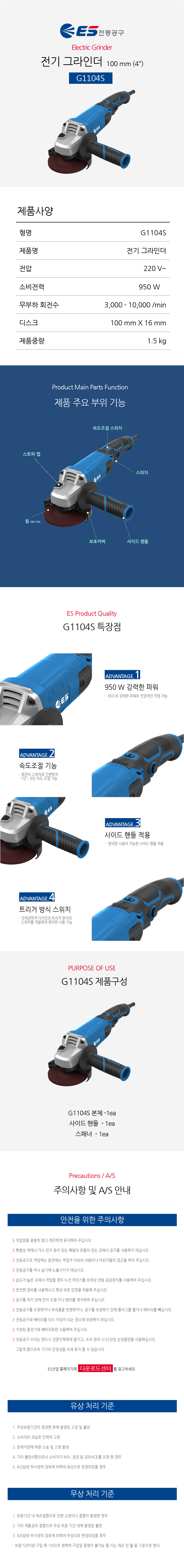 ES산업 그라인더 G1104S 4 속도조절 가능 , 유선그라인더, 연마기, 절단기