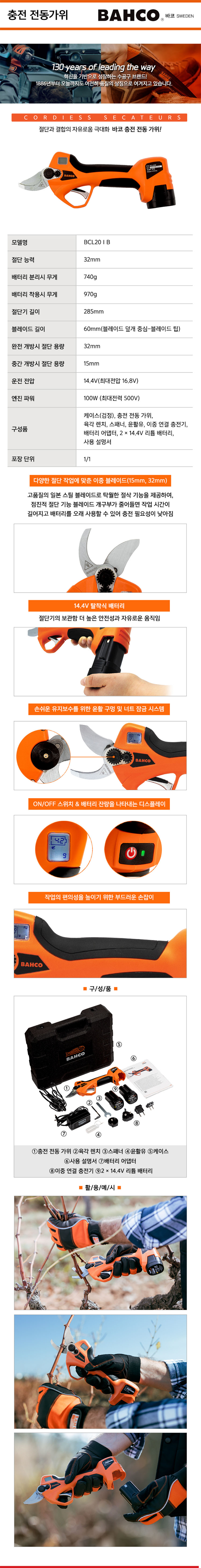 바코 충전전동가위 BCL20IB, BAHCO, 충전전지가위, 전지가위, 충전가위