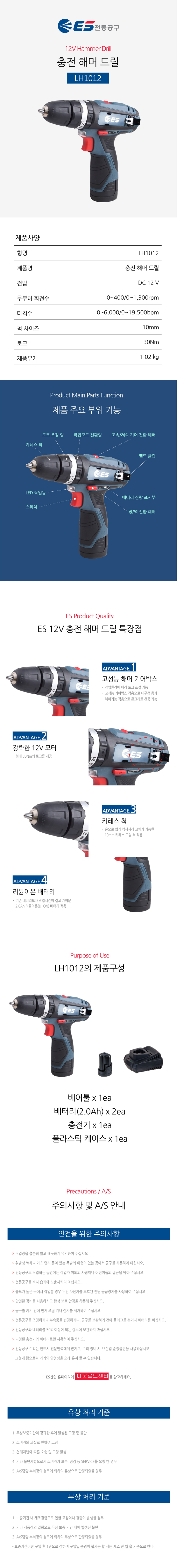 ES산업 12V 충전해머드릴 LH1012 , 충전드릴, 햄머드릴, 충전공구