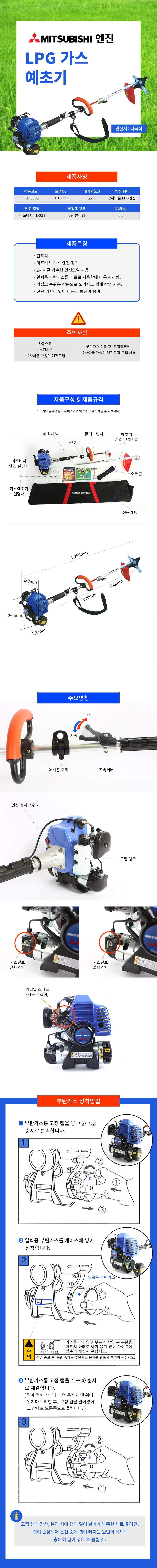 UDT LPG예초기 TL-231e가스견착식(미쯔비시)2사이클 제초기,벌초기,공구몰,5300303