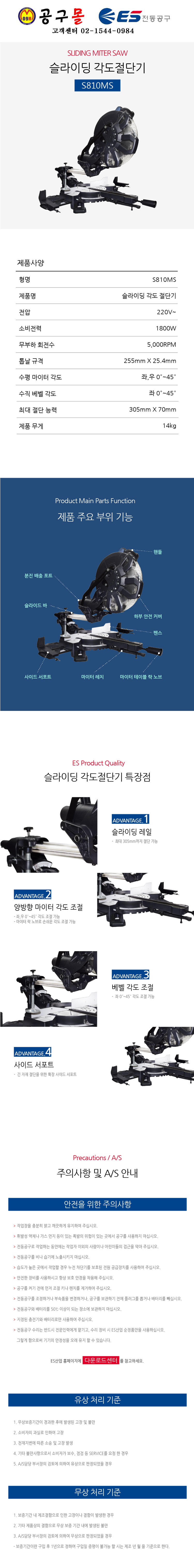 ES산업 슬라이딩 각도절단기 S810MS (250mm) ES산업 , 목재절단기, 정밀절단기, 공구몰