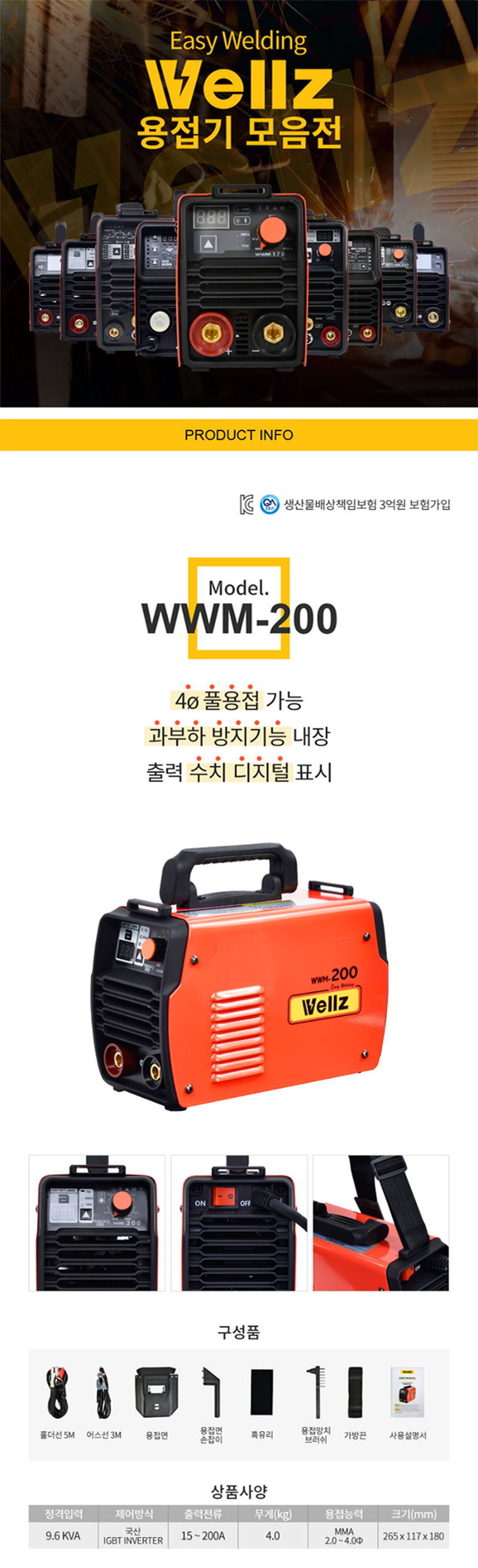웰즈 WWM-200 인버터용접기 (2.0~4.0MM), 용접기