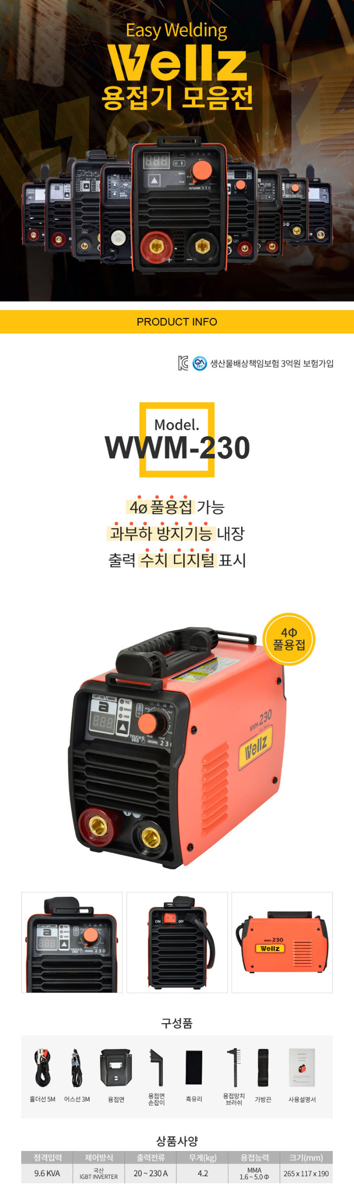 웰즈 WWM-230 인버터용접기 (1.6~5.0MM), 용접기