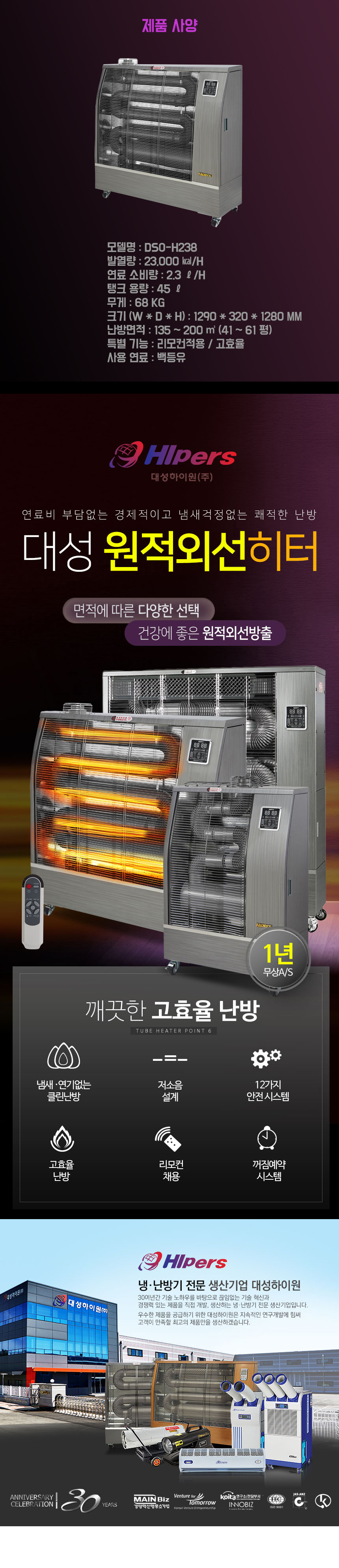 대성하이원 원적외석히터(백등유) DSO-H268F (50-85평) 난방기구, DSOH268F