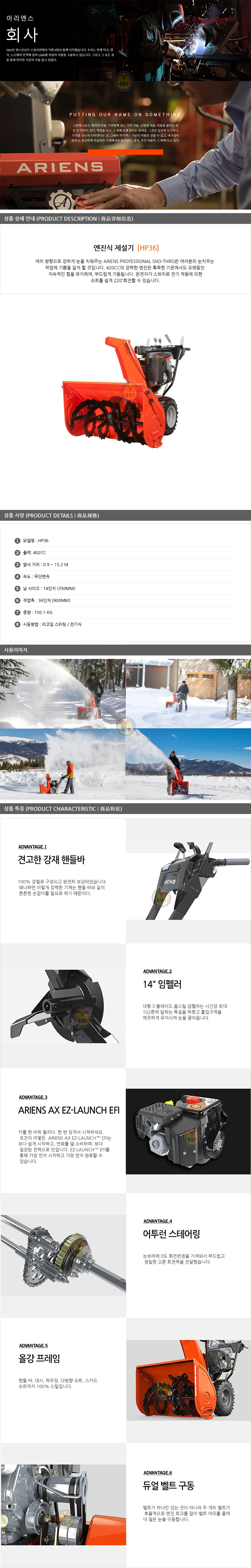 ARIENS 엔진식 제설기 HP36 (420CC) ,아리엔스, 제설기계, 눈치운는기계, 동절기장비