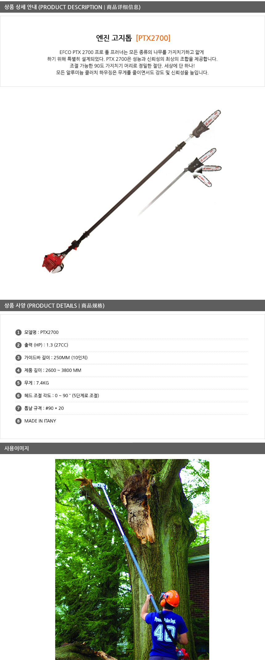 에프코 엔진고지톱 PTX2700 (1.3HP), 고지톱, 가지치기, 가지정리톱