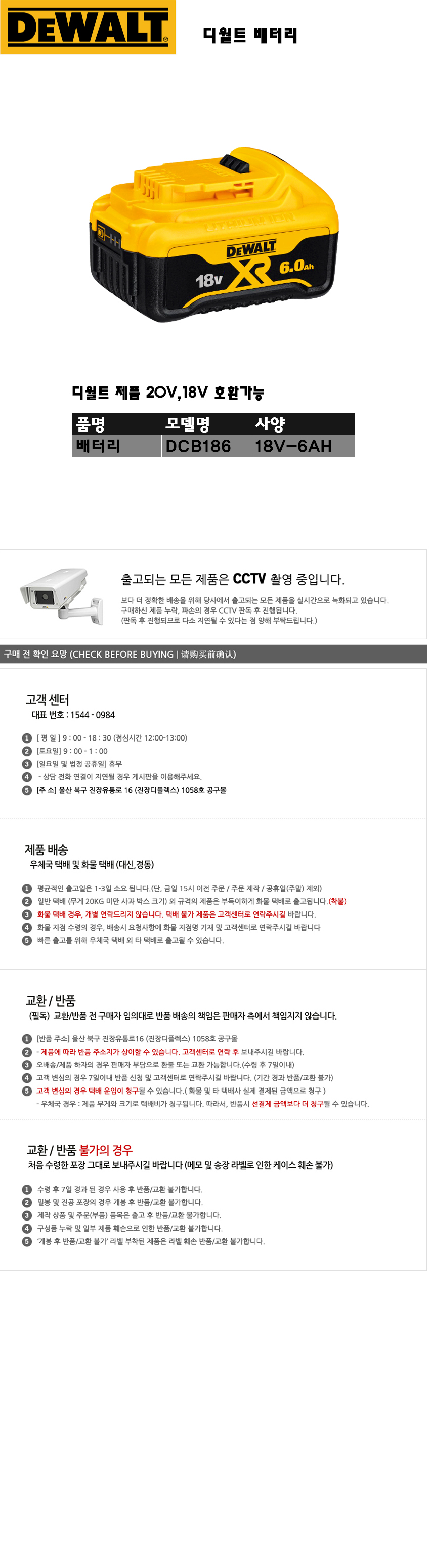 디월트 배터리 DCB186 (18V-6AH) C510-3092