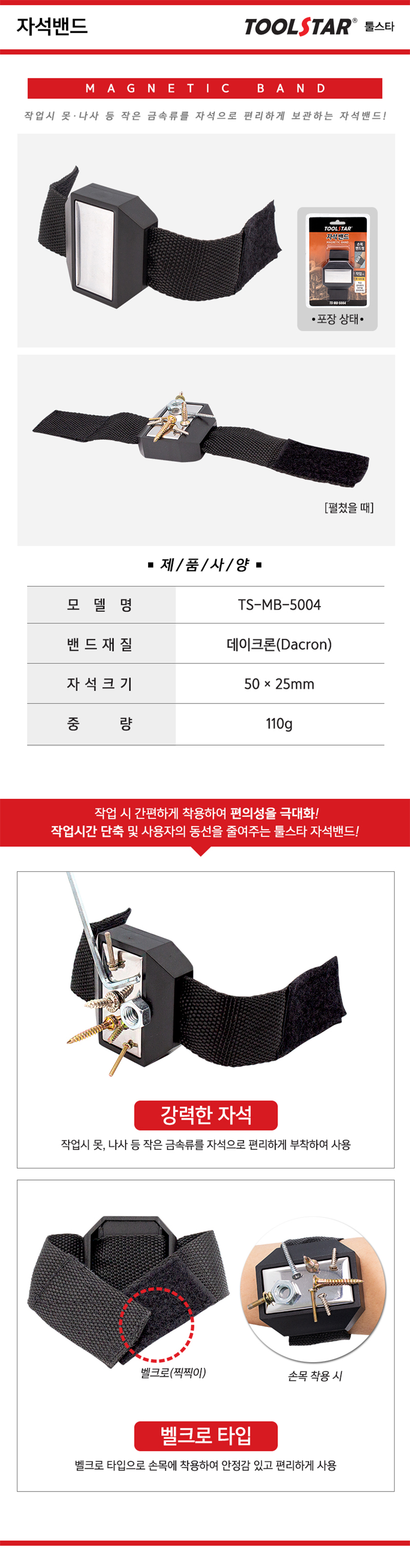 툴스타 자석밴드 TS-MB-5004 벨크로,강력자석 Toolstar