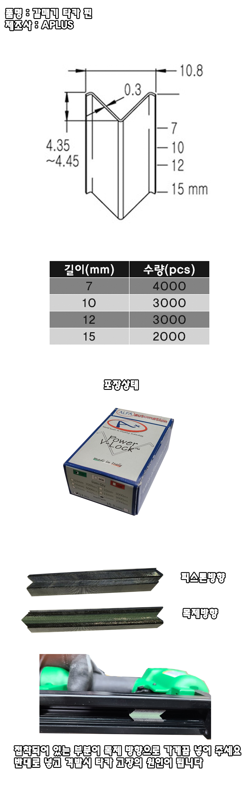 갈매기타카핀 7mm (4000pcs) Aplus 액자못, 액자타카못